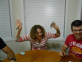John: Shelley, while I get the cards, why don't you explain the game?Shelley: (No. Absolutely not. Remember what happened to Shenley at Christmas when he tried to take the family picture? Please don't make me. http://honeydidyouseethat.blogspot.ca/2011/12/smith-christmas-tradition-3-how-to-take.html ) Why don't I get the cards and you explain? After all you cooked supper. You've done enough.
